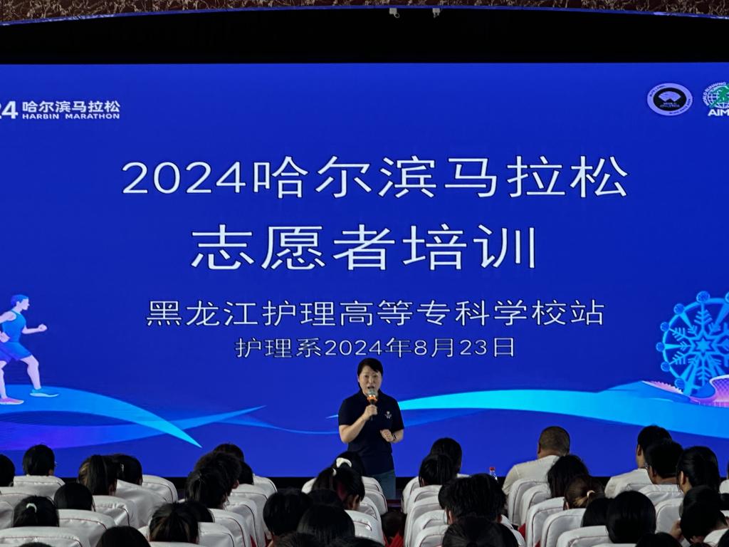 为了弘扬志愿服务精神,充分展示龙护专青年志愿者的风采,不断提升哈马赛事的志愿服务水平,护理系于8月23日下午在阿城校区多功能厅举行了黑龙江护理高等专科学校2024哈尔滨马拉松志愿者培训会。哈马组委会培训教师车艳丽、学工部负责人刘哲妍、团委负责人孙健飞、护理系党总支负责人宗晓,我校哈马志愿者带队老师和570名学生志愿者参加培训,培训会由护理系副科级辅导员艾卓扬主持。