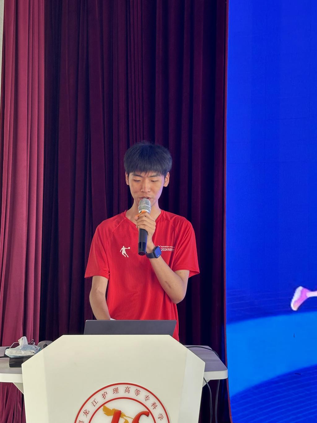 李多嘉诺代表志愿者表态,用专业的知识和饱满的热情,为选手提供优质服务,为赛事顺利进行保驾护航!
