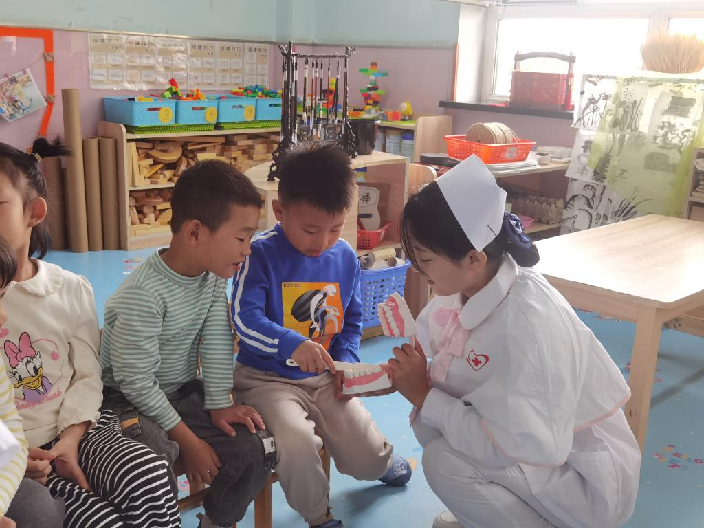 上午,师生们来到阿城区第二幼儿园开展以“赋能零蛀牙幼儿园——微笑童年”为主题的口腔科普活动,为幼儿园的孩子们带来了集专业性、趣味性和知识性的口腔科普小课堂。活动现场,师生们充分发挥专业优势,通过形象的图片、生动的模型以及深入浅出的讲解,向孩子们介绍了牙齿的结构、功能以及正确的刷牙方法。孩子们睁着好奇的大眼睛,认真聆听着每一个小知识,积极回答老师们提出的问题。在互动环节中,为孩子们进行了圆弧刷牙法的宣教,并让孩子们进行“小小牙医大比拼”。孩子们纷纷举起小手,分享自己平时的护牙小经验,现场气氛十分活跃。活动中,志愿者向孩子们发放了精心制作的牙医小贴纸、口腔健康宣传手册,鼓励孩子们将护牙知识带回家,与家长们一起分享,共同守护口腔健康。