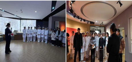 在庄严肃穆的纪念馆中,党支部成员集体参观了于维汉院士生前使用过的诊疗器械、珍贵手稿及历史照片。通过讲解员丁一然同学的生动讲述,党员同志们深入了解了于维汉院士长期扎根克山病区、带领医疗团队攻坚克难、无私奉献的感人事迹。