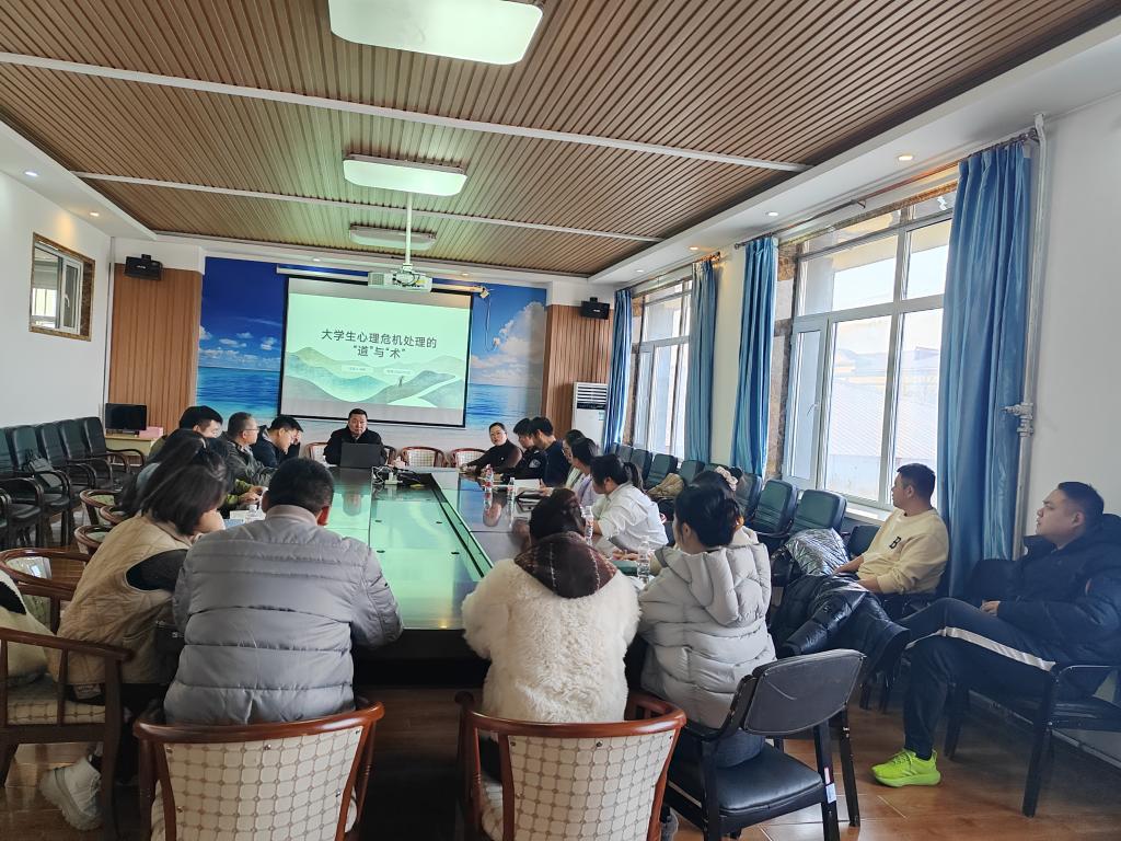 2025年11月25日,黑龙江护理高等专科学校护理系特邀哈尔滨师范大学教授、硕士生导师马林,为全体辅导员开展了一场主题为《大学生心理危机处理的“道”与“术”》的专业讲座。此次培训聚焦提升辅导员对学生心理危机的识别与干预能力,内容兼具理论高度与实践深度,现场反响热烈。