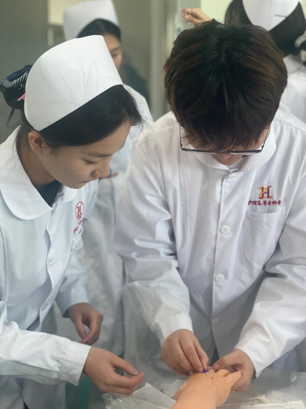 本次培训紧扣临床实习核心需求,重点围绕两大关键内容展开。一方面,老师们带领学生系统回顾了密闭式静脉输液等护理核心操作的规范化流程,从解释核对、备药备管、静脉选择、排液操作,到皮肤消毒、进针穿刺等关键步骤,逐一拆解要点、强调操作规范,帮助学生巩固专业技能基础,确保临床操作的精准性与规范性。另一方面,针对临床实习中易发生的职业损伤风险,着重讲解了锐器伤的防护要点与紧急处理流程,通过案例分析、实操指导等方式,让学生熟练掌握风险规避技巧和意外发生后的应急处置方法,强化职业安全防护意识。